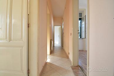 Grazie agli accessi diretti al terrazzo sia dal corridoio che dalla cucina, si crea un connubio perfetto tra interni ed esterni, tra storia e vita quotidiana.