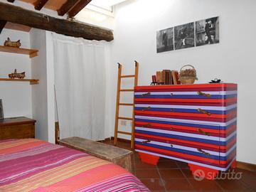 Ambiente molto carino, arredato con spirito "vintage", pavimento in cotto, travi a vista, infissi doppi in legno. L'appartamento può essere fornito di accessori complementari quali stoviglie, biancheria etc (secondo il tipo di contratto).