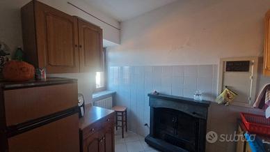 L'abitazione, posta al piano primo è composta da: soggiorno, cucinotto, camera, cameretta, bagno ed un balcone. La cantina, posta al piano seminterrato è composta da due vani di cui uno più ampio con camino e l'altro più piccolo con vaschetta lavapanni e w.c.