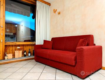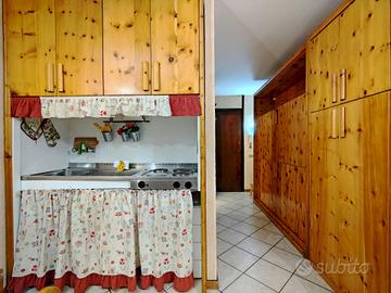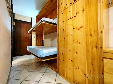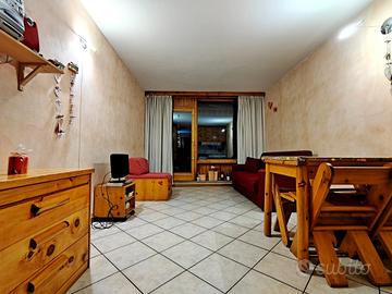Residence Ciel Bleu - Appartamento monolocale al terzo piano con ascensore, 4 posti letto totali, 2 con letti ad armadiatura a scomparsa e 2 con divano letto. Bagno con doccia. Terrazzo di circa 10 mq con ottima esposizione e vista aperta. A completare la proprietà una cantina accessibile proprio fronte all'alloggio, ottima per ricovero sci o ripostiglio/dispensa.