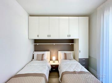 L'appartamento dispone di 2 camere da letto, una matrimoniale e una con 2 letti singoli, divano letto matrimoniale in salotto, TOTALE 6 POSTI LETTO.