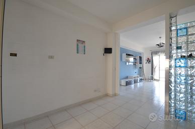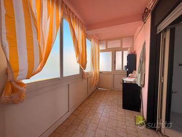 La casa si compone di due comode camere da letto, una accogliente cucina-soggiorno e un bagno finestrato con box doccia. Gli spazi esterni rappresentano un vero valore aggiunto: due ampi balconi, di cui quello della cucina chiuso e adibito a pratica zona lavanderia, con utili ripostigli esterni per ottimizzare gli spazi. Gli esterni sono sfruttabili nelle belle stagioni, arredando con mobilio adatto all'uso convenuto. L'immobile è rifinito con pavimentazione in ceramica e infissi in doppio vetro di ultima generazione, garanzia di comfort e isolamento. Completa la proprietà un posto auto assegnato all'interno del cortile condominiale, dettaglio sempre più raro e ricercato. La posizione è strategica, con numerosi servizi, attività commerciali e la fermata del bus a pochi passi da casa. Una soluzione ideale come prima abitazione o come investimento, grazie al prezzo estremamente allettante e a un panorama mare che valorizza ogni giornata.