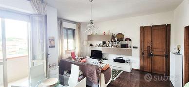 L'immobile (circa 96 mq) si presenta in buone condizioni ed è composto da ingresso su ampio soggiorno, sala pranzo, cucinotto, bagno, 2 camere matrimoniali e 3 terrazzi.