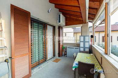 RIF 1016 Composto da ingresso, soggiorno con cucina Americana , disimpegno che divide la zona notte. composta da una camera da letto matrimoniale di ampia metratura e il primo bagno padronale, dal Soggiorno troviamo una scala interna per accedere al sotto tetto rifinita in ferro battuto rivestita completamente con arredo su misura i gradini sono completi di faretti segna passo che si illuminano al buio, completa l'immobile la pertinenza del terrazzo di 40 mq circa tutto coperto con travi in legno pregiato oltre a zanzariere e tende esterne elettriche oscuranti per il sole! questo immobile è dotato di veneziane elettriche, L'appartamento dispone di: - Porta blindata - Infissi in legno vetro doppio - Split di aria condizionata completa di pompa di calore - Inferiate su tutte le finestre - Appartamento completo di BOX DOPPIO L'immobile si trova a Pioltello zona del centro storico a breve distanza da tutti i trasporti pubblici e servizi commerciali di cui: (Scuole) - Istituto Professionale Niccolò Machiavelli - ITCS Schiaparelli-Gramsci (Supermercato) - MD - Carrefour Market - Gigante - LIDL (Ufficio Postale) UCI CINEMA (Trasporto Pubblico) - z402 S.Felice - Pioltello FS - Cernusco M2 - 965 PIOLTELLO - SEGRATE - MILANO LORETO M1/M2 - z401 Melzo FS - Vignate - Villa Fiorita M2 (Farmacia) (Banca) - Intesa San Paolo - BCC (CAF)Contattaci al numero per avere tutte le informazioni necessarie, i nostri consulenti sono a tua disposizione per accompagnarti dalla ricerca dell'immobile fino alla consegna delle chiavi. Il Comune Pioltello si trova nella zona Est dell'hinterland Milanese, dista meno di 10 KM da Milano e 8 KM dall'Aeroporto di Linate, situata tra la SS 11 Padana Superiore e la Strada Provinciale Rivoltana. Servita dalla Linea MM2 - [Abbiategrasso/Assago Milano fior - Classe: B - IPE: 77.84 kWh/mq anno