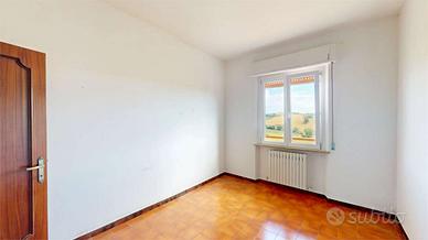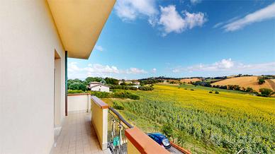 POLVERIGI - Nella zona periferica del Comune, nella via San Giovanni, vendiamo appartamento al 1° piano di 75 mq. NETTI in palazzina di 6 famiglie esternamente ristrutturata. L'appartamento, libero su 3 lati, si compone da ingresso, salone con balcone panoramico versante Monti, cucina abitabile, 2 camere da letto, con altro balcone versante Mare e bagno. Le condizioni interne sono originarie della fine degli anni '80, con la sola eccezione degli infissi esterni in PVC recentemente sostituiti.