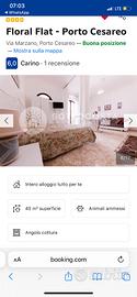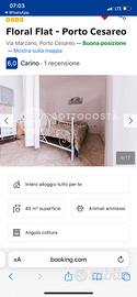 Vendo casa prenotata su Booking, al prezzo di 1500 dal 16 agosto ore 9 al 24 agosto ore 12:00pagamento in struttura, struttura certificata. Non posso più andarci per un lutto in famiglia. La camera comprende 2 camere, un bagno, soggiorno con cucina, varie televisioni e soprattutto un bel balcone spazioso