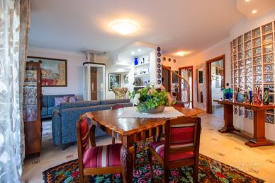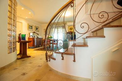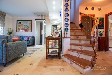 In zona residenziale, vendiamo attico in fabbricato recentemente oggetto di superbonus 110 %. La soluzione che proponiamo si sviluppa su due piani, esattamente al secondo e terzo piano con zona giorno e notte ben distinti. Dal portoncino blindato accediamo al salone che si affaccia su ampio terrazzo abitabile con vista mare, la cucina anche questa ampia e abitabile, accoglie oltre all'angolo cottura anche la zona soggiorno, un bagno ed un ulteriore terrazzo completano la zona giorno. Al piano superiore, a cui si accede tramite una rifinitissima scala o il monta carichi interno, la zona notte accoglie tre camere da letto, il bagno padronale e due terrazzi uno dei quali rivolto verso la costa e da cui si può apprezzare un'invidiabile vista mare. Le rifiniture sono di ottima qualità e l'intervento di efficientamento energetico ha riguardatola sostituzione della caldaia con un moderno Chiller elettrico, la sostituzione degli infissi, la posa del cappotto termico, l'installazione di un impianto fotovoltaico dedicato.
