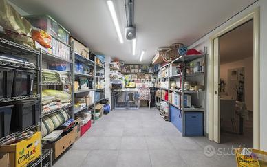 Dall'interno della soluzione si accede al piano seminterrato dove troviamo un ampia tavernetta con bagno e ripostiglio e il box auto di 27 metri.