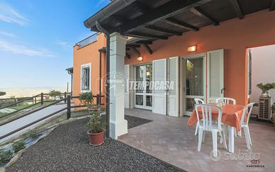 INTERNO: Tramite l'ingresso indipendente si accede all'ampio giardino che circonda la soluzione e che gode di una bellissima vista sui colli e sul mare.