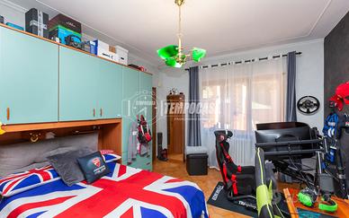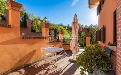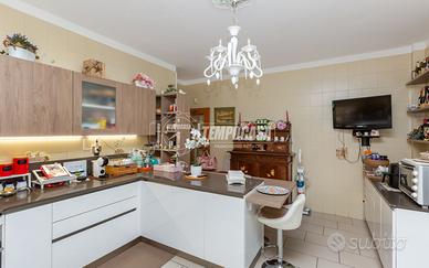 L'accesso principale all'immobile si trova su un luminoso terrazzo di proprietà. Tramite il portoncino blindato accediamo al disimpegno da cui si diramano i vari ambienti: cucina abitabile separata dal soggiorno, entrambi con accesso diretto al secondo terrazzo che rimane coperto e con vista sulle colline e su Superga; una sala da pranzo con camino a legna eventualmente utilizzabile come camera da letto. A completare l'abitazione troviamo un bagno e due grandi camere da letto.
