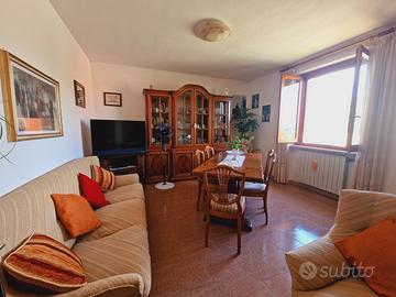 (Riferimento: MONTECAMPANO3-1) Nella frazione di Montecampano vendiamo porzione di bifamiliare al piano primo cosi composta : due unità abitativa che si possono collegare oppure la parte attualmente utilizzata come grande spazio di 50 mq può essere convertito in un bilocale autonomo , appartamento grande di 170 mq cosi composto cucina con camino abitabile e cucinino con balcone , grande salone , 2 bagni , 3 camere e ripostiglio , vari balconi per il perimetro dell'abitazione , al piano seminterrato troviamo un grande garage ed una cantina , completa la proprietà un giardino privato di circa 400 mq , soffitta ideale come ripostiglio