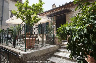 (Riferimento: LUGNANO02-1-1-1) Nel bellissimo borgo di Lugnano in Teverina, considerato uno dei più belli d'Italia, in posizione strategica per la visita delle più belle città d'arte dell'Umbria e distante soltanto 10 Km dall'uscita di Attigliano sull'autostrada A1 (Roma dista soltanto 80Km), vendiamo immobile unico nel suo genere, palazzo storico finemente ristrutturato e caratterizzato da una posizione dove la vista ed il panorama sono predominanti ed esclusivi. L'immobile è così composto: al piano terra troviamo un ampio garage e grandi locali, di cui uno con un enorme camino posto al centro di una parete, che possono essere adibiti ad attività commerciali o residenziale.Nella parte interna troviamo delle cantine ed una grande legnaia. Il tutto per una metratura di oltre 200 mq con vari ingressi sulla via principale, pavimenti in cotto e soffitti a volta con pianelle in cotto. Al piano primo si accede all'immobile grazie ad una breve scalinata che culmina con un cortile di circa 100 mq dove si trova un pozzo per la raccolta delle acque pluviali, il tutto completamente recintato dalle mura storiche. Dal corridoio centrale si accede sulla destra ad una grande cucina abitabile, luminosa e con un bellissimo camino ad angolo. A sinistra un salotto anch'esso con un camino e grandi finestre che guardano sul cortile interno.Nel salotto c'è una porta che introduce ad un ripostiglio. La zona giorno termina con una grande sala da pranzo luminosissima con finestre che scoprono il panorama unico. Alla zona notte si accede attraverso un altro corridoio dove si trovano due spaziosissime e luminose camere matrimoniali sempre con affaccio incantevole ed un bagno ampio e luminoso. Tutti gli infissi interni sono in castagno massiccio mentre i pavimenti sono in cotto e piastrelloni in graniglia lucido; sia gli infissi che i pavimenti sono originali.