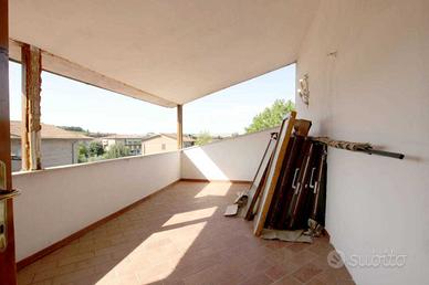 (Riferimento: R3644) MONTERONI D'ARBIA VENDESI porzione di villetta libera su 3 lati composta: piano terra ampio salone con angolo cottura, camino, terrazzo e ripostiglio; piano primo ampio disimpegno, due camere singole, bagno con vasca idromassaggio, camera matrimoniale con cabina armadio e bagno e grande loggia; al piano sottostante locale di sgombero e garage per vario uso. Ampio resede piastrellato all'ingresso.