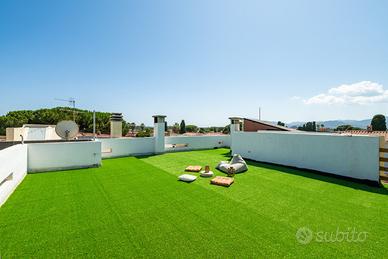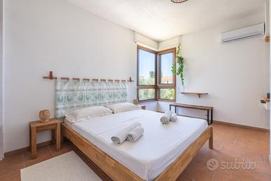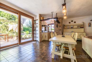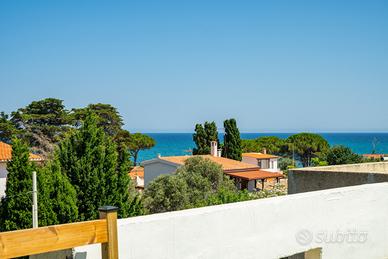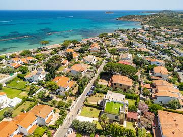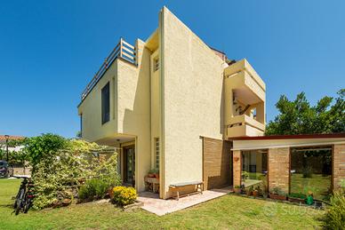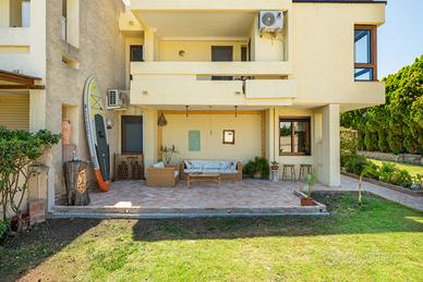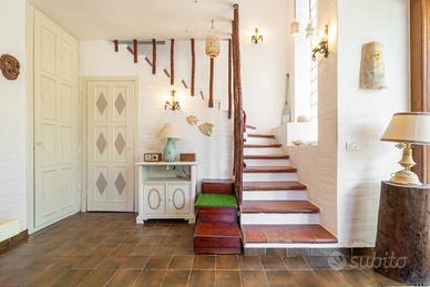 (Riferimento: 26) Porto Columbu. A pochissima distanza dal mare e in un contesto di assoluta tranquillità, disponiamo di un ampia e rifinita villa semindipendente. La proprietà, interamente ristrutturata a nuovo, si sviluppa su due livelli. Al piano terra è presente un ampio ingresso soggiorno con camino, un attrezzata cucina a vista, bagno e ripostiglio. Al piano primo la zona notte è composta da disimpegno, quattro camere da letto matrimoniali di cui una con bagno en suite e bagno padronale Il piano superiore permette l'accesso a una bellissima, luminosa e panoramica terrazza vista mare. Completano questa bellissima proprietà una zona relax accessoriata con forno e barbecue, una comoda doccia esterna e un bellissimo e curato giardino sui tre lati con posti auto. La proprietà verrà venduta arredata ed essendo perfettamente in regola urbanisticamente ha anche la possibilità di essere interamente mutuata.