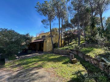 (Riferimento: 36) Pula All'interno della riservata e esclusiva comunione Viale Dei Fiori, a circa 300mt dalla piaggia, disponiamo di un interessante villa bifamiliare. La proprietà è composta da un ampio loggiato con barbecue, un ingresso soggiorno con camino, disimpegno, cucina, camera da letto e bagno. Al piano primo la zona notte è completata da due camere da letto e bagno. Un ampio giardino con posti auto completano questa interessante soluzione ideale per chi cerca relax, natura e il mare a pochi passi