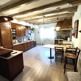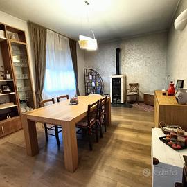 L'abitazione è una casa accostata ad un lato, gode di un proprio giardino esclusivo, si dispone su due livelli ed è così composta: ingresso, soggiorno, pranzo, cucina con travi a vista separata dalla zona giorno ed abitabile, tre camere da letto matrimoniali al piano primo, due bagni (uno al piano terra ed uno al piano primo ed entrambi finestrati). La casa è stata oggetto di recente ristrutturazione che ne ha migliorato l'efficientamento energetico, infatti sono presenti: un sistema a cappotto, un impianto solare termico, serramenti in pvc con vetrocamera.