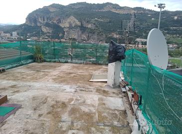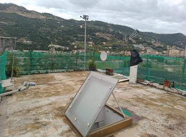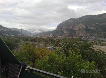 (Riferimento: 283210) A pochi passi dal centro cittadino di Ventimiglia proponiamo questa residenza ideale per chi ama stare all'aria aperta ma allo stesso tempo avere una metratura generosa con uno splendido terrazzo di oltre 60 mq. L'ingresso è diviso con un'altra proprietà, si accede al cortile condominiale dove poter parcheggiare diverse auto dato che è oltre 300 mq. Si accede alla casa al piano terra di circa 77 mq dove troviamo un ingresso living su soggiorno con cucina a vista, una camera e un bagno, al piano sottostante di circa 50 mq abbiamo una camera, una cameretta e un altro bagno, dal piano sottostante si accede al terrazzo di circa 60 mq dove possiamo godere di una vista aperta su tutta la città di Ventimiglia e riceviamo la luce diretta del sole essendo la casa esposta a Sud/Est, inoltre nel sottotetto c'è la possibilità di adibirlo a ripostiglio mentre nella parte sovrastante abbiamo il tetto piano dove volendo possiamo creare un ulteriore terrazzo oppure sopraelevare di un altro piano essendoci cubatura per ulteriore edificabilità, permessi permettendo. Completa la proprietà un box auto doppio di pertinenza dove è presente l'adduzione dell'acqua e del relativo scarico. Libero subito.