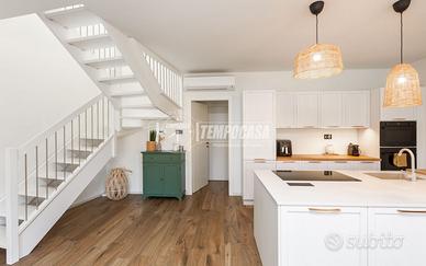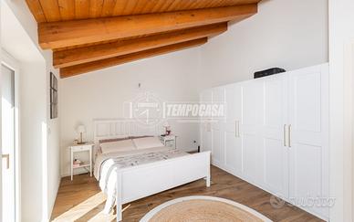 L'ingresso si apre su uno straordinario soggiorno di circa 60 mq, ampio e luminosissimo, con cucina a vista e grandi vetrate che creano una perfetta continuità tra interno ed esterno. Le vetrate conducono direttamente all'area terrazzata con pergolato, ideale per pranzi all'aperto e momenti di relax. Completano il piano il primo bagno, una lavanderia utilizzata anche come locale tecnico e un disimpegno che porta ad un secondo accesso che garantisce ulteriore comodità e indipendenza.