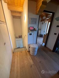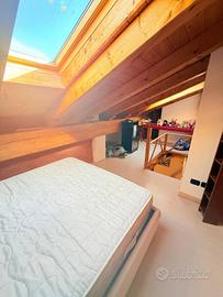 Al piano terra vi è la zona giorno con angolo cottura che accede direttamente sul balcone e su un'ampia zona verde ad uso esclusivo.