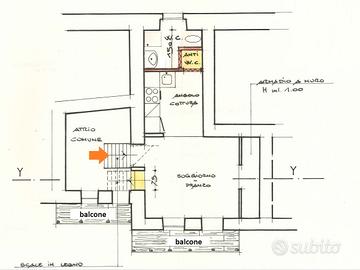 Composta da soggiorno con angolo cottura, bagno e ambia camera da letto. Ripostiglio nel sottotetto.