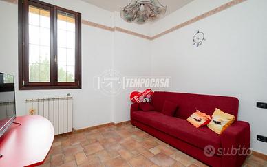 La Tempocasa di Crevalcore propone in vendita una porzione di casa su tre livelli con ingresso indipendente, con giardino privato e garage doppio di 25mq.