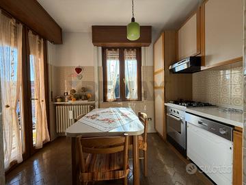In zona tranquilla e residenziale, proponiamo una spaziosa porzione di casa disposta su un unico livello al primo piano e giardino di pertinenza.