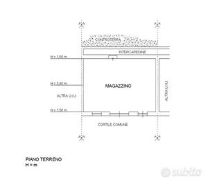 L'immobile è così composto: al piano terra, un magazzino di 54mq, utilizzabile come box auto, deposito o spazio accessorio.