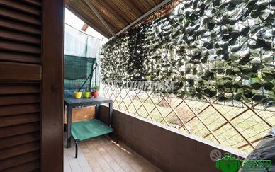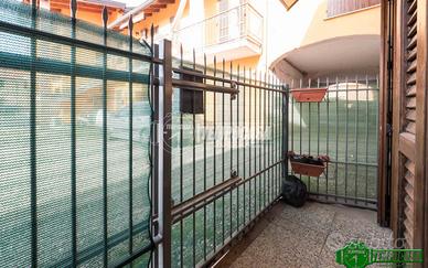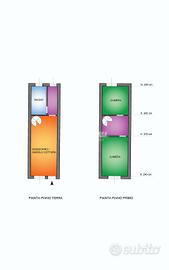 L'ingresso si apre su un piccolo spazio esterno di qualche metro quadrato, utile per posizionare piante o un piccolo tavolino. Entrando nell'abitazione si accede alla cucina, che risulta semi separata rispetto al soggiorno, creando una suddivisione funzionale degli ambienti. Sul retro dell'immobile si trova una piccola area esterna pavimentata, perfetta per essere sfruttata come angolo relax o per organizzare uno spazio aggiuntivo all'aperto. Sempre al piano terra è presente un bagno con box doccia, pratico e ben organizzato.