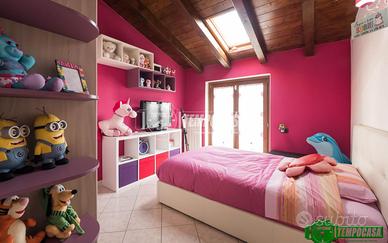 Una scala a chiocciola conduce al piano superiore, dove si sviluppa la zona notte. Qui troviamo due camere da letto ampie e luminose, ideali sia per una famiglia che per chi desidera ricavare uno spazio studio o per gli ospiti. Sullo stesso livello è presente un secondo bagno di servizio, dotato di solo water e lavandino, utile per garantire maggiore comodità nella vita quotidiana.
