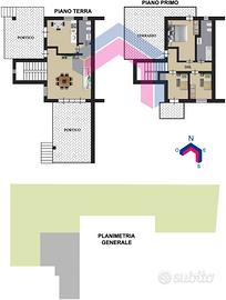 o Piano terra: Ingresso su luminoso salone, Cucina abitabile, Servizio, 2 Terrazzi coperti perfetti per pranzi e cene all'aperto, Giardino di pertinenza.
