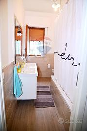 L'immobile è così distribuito: il piano terra ospita una luminosa zona living open space con cucina a vista e soggiorno, un bagno di servizio e una zona lavanderia. Una scala in legno conduce al primo piano, dove si sviluppano tre camere da letto, due bagni e una seconda scala che dà accesso al terrazzo panoramico, su cui sono installati pannelli solari da 6 kW. Completa la proprietà un terreno privato di circa mq.600 completamente recintato, con accesso carrabile e pedonale e una parte pavimentata. Le finiture sono moderne, con pavimenti in grès effetto parquet e predisposizione per impianto di riscaldamento. L'immobile gode di una posizione tranquilla e panoramica con splendida vista sul mare, ed è in perfette condizioni interne grazie alla ristrutturazione eseguita nel 2019.