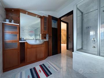 Sempre al piano terra si trovano un bagno finestrato di generose dimensioni, dotato di vasca angolare idromassaggio, e una camera matrimoniale ampia e confortevole.
