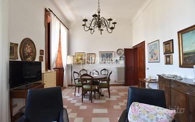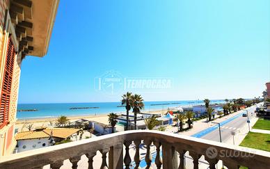 PORTO SAN GIORGIO - 1° FILA MARE - In posizione esclusiva e centrale, porzione di villa in stile Liberty, con ingresso autonomo dalla corte di circa 75 mq, e sviluppata su 3 livelli così composti: PIANO TERRA caratterizzato da ingresso signorile con elegante scala in marmo che conduce alla parte abitativa - 2° PIANO di 115 mq diviso in disimpegno, grande salotto con uscita sul balcone est (3 mq), ampia cucina abitabile con camino, camera singola, bagno finestrato con vasca, camera matrimoniale con uscita sul balcone privato esposto ad est (3 mq) e seconda camera matrimoniale con uscita sul balcone abitabile esposto a sud (5 mq con accesso anche dal disimpegno) - 3° PIANO di 87 mq, ad uso sottotetto, con altezza centrale di 3 metri ed in buona parte abitabile, attualmente diviso in zona giorno con uscita sul terrazzo panoramico di 18 mq, ampia zona notte e bagno finestrato con doccia. Completa la soluzione un comodo garage di 15 mq al piano strada. INTERNO in buone condizioni abitative, caratterizzato da ambienti ampi e luminosi nell'arco di tutta a giornata, vista l'esposizione dei piani abitativi su tutti e 4 i lati. Possibilità di realizzare un montacarichi/ascensore di collegamento tra il piano terra e la parte abitativa. ESTERNO caratterizzato da finiture e materiali tipici dell'epoca, e tutti in buone condizioni complessive; la corte al piano terra, con ingresso pedonale dal Lungomare ed ingresso carrabile da via Rismondo, rappresenta di certo un vero e proprio valore aggiunto dell'immobile, così come il balcone abitabile ed il terrazzo panoramico della parte abitativa. Posizione esclusiva, centrale e fronte mare. Quattro buoni motivi per acquistare questo immobile: 1) Ingresso indipendente con corte privata (carrabile) - 2) Terrazzo ampio e panoramico - 3) Posizione esclusiva- 4) Garage sul Lungomare TUTTI I NOSTRI - Classe: G - IPE: 175.00 kWh/mq anno