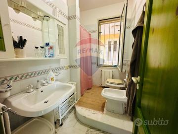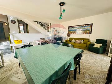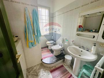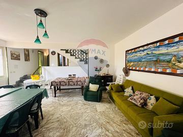 La villa ha ingresso autonomo con cancello automatico e gode di circa 600mq di spazio esterno recintato sfruttabile come parcheggio e adatto a realizzare un giardino con piscina. È composta da un piano sottostrada allestito ad appartamento, con cucina in muratura, dove si può realizzare una zona basement tipica delle ville americane. Al piano terra troviamo un'ampia zona giorno con soggiorno/cucina open space, tre comode camere da letto e due bagni. Al piano superiore, che gode di una metratura di quasi 90mq, troviamo un grande ambiente open space con uscita sul terrazzino del prospetto principale e quello del prospetto posteriore, due camerette e un bagno. In questo piano troviamo una porta che conduce ad una scala comune con l'altra porzione di villa che permette di accedere alla zona solarium nel terrazzo sul tetto. Quest'ultimo è suddiviso in muratura per cui ogni porzione di villa gode di un terrazzino sul tetto ad uso esclusivo per garantire il massimo della privacy.