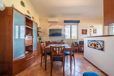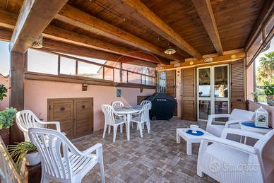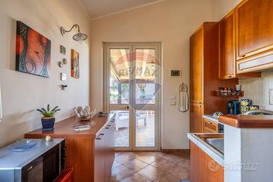 Nella splendida cornice della costa siciliana e precisamente tra Trabia e San Nicola LArena e precisamente in Contrada Sant'Onofrio, all'interno dell'elegante Residence Acquamarina, proponiamo la vendita di una interessante porzione di villa di mq.60 con corte esclusiva di circa mq.700 ben curata. La proprietà è così distribuita: dal cancello di accesso alla corte esclusiva si arriva alla scala che ci porta all'ampio terrazzo coperto dove troviamo l'ingresso dell'abitazione, qui ci accoglie una cucina a vista con comodo living, un piccolo disimpegno ci conduce alla zona notte composta da due camere servite da un servizio con doccia finestrato. L'ampia terrazza coperta consente di godere di panorami suggestivi e mozzafiato, dai caldi tramonti estivi alla vista delle isole eolie. Il meraviglioso giardino curato e terrazzato di circa 700 mq. regala piacevoli momenti di relax e consente anche linstallazione di una piscina fuori terra ad uso esclusivo. La proprietà è dotata di caldaia a gas per l'acqua sanitaria e per la cucina, infissi interni in pvc con vetrocamera, zanzariere, persiane esterne in pvc, ripostigli soppalcati, climatizzatori, arredi esterni sia per il terrazzo coperto che per il giardino ed infine funzionali ripostigli adiacenti al terrazzo. La villetta sarà venduta totalmente arredata pertanto sarà possibile utilizzarla immediatamente. Per ogni villetta è riservato un posto auto davanti all'accesso della villa plurifamiliare. Il residence Acquamarina si trova a circa 1,5 km. dal mare, è dotato di due ingressi, un lido a mare esclusivo per i residenti, un servizio gratuito di navetta per il periodo estivo, piscine per adulti e bambini, campo di calcetto, bar e animazione estiva . Per ulteriori informazioni o per pianificare una visita, vi chiediamo di contattarci.