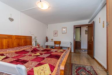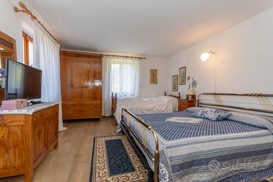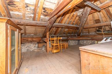 Il balcone soleggiato regala viste panoramiche che parlano di cielo, legno e montagne - un piccolo palcoscenico per momenti indimenticabili al mattino o al tramonto. La dotazione include una porzione di soffitta ideale come spazio deposito o ambiente da recuperare, una cantina per le tue conserve o scorte, una legnaia al piano terra e un piccolo scoperto privato, perfetto per rigenerarsi all'aria aperta fra un caffè e una lettura estiva.