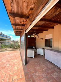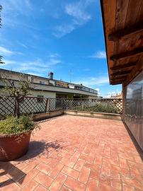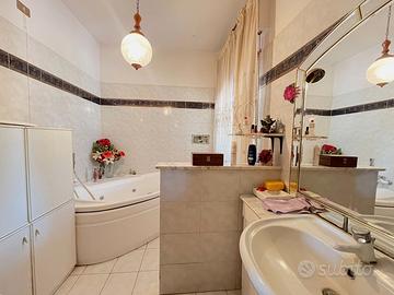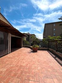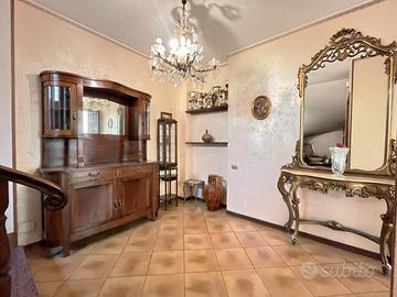 VIA DEI MONTI CIMINI In posizione strategica rispetto ad ogni servizio e al centro della città, proponiamo in vendita una porzione di trifamiliare con cantina e taverna. L'immobile è distribuito su più livelli: Piano terra - accesso alla proprietà attraverso un portico privato, ampio ingresso con scalinata che collega tutti i livelli dell'abitazione. Piano primo - soggiorno con termocamino, cucina separata con balcone, zona notte con tre camere matrimoniali, di cui una molto grande con bagno privato, bagno finestrato con doccia. Completano il piano un ulteriore balcone a servizio della zona notte e una spaziosa terrazza con parziale copertura in legno. Piano seminterrato - taverna di circa 120 mq dotata di camino e servizi, con magazzino e locale tecnico. La casa gode di un'ottima luminosità grazie alla sua tripla esposizione. La terrazza, ideale per momenti di relax all'aperto, rappresenta il vero e proprio punto di forza di questo immobile, unico nel suo genere . Un posto auto situato in cortile garantisce comodità di parcheggio all'interno della proprietà.