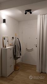 In zona residenziale tranquilla e ben servita, affittasi bilocale completamente RISTRUTTURATO e ARREDATO posto all'ultimo piano, con vista. L'appartamento si compone di: ingresso, zona giorno e pranzo con angolo cottura (forno, piano induzione 4 fuochi e frigo inclusi), zona lavanderia (lavatrice inclusa), antibagno, bagno, camera matrimoniale, cabina armadio con angolo ripostiglio. Completano l'immobile un balcone esterno privato e POSTO AUTO condominiale scoperto assegnato. A Maggio 2026 verrà installata l'aria condizionata. TV in arrivo. Presenza di 4 ascensori. Le spese condominiali includono: acqua calda, acqua fredda, riscaldamento a pavimento e le spese generali del condominio, il quale ha anche i pannelli solari. Classe energetica A4. LIBERO DA GENNAIO 2026. Canone richiesto: 700€ +100€ spese condominiali. No obbligo residenza.