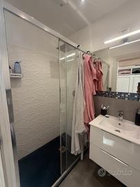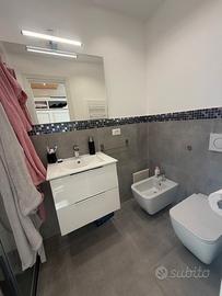 bagno con box doccia 80x130, sanitari sospesi, porta scrigno