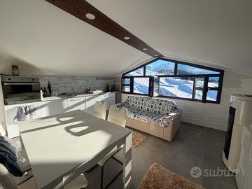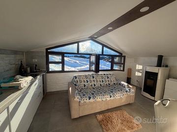 In posizione dominante e soleggiata, splendido bilocale completamente ristrutturato e arredato con gusto, affacciato direttamente sulle piste da sci di Prato Nevoso.