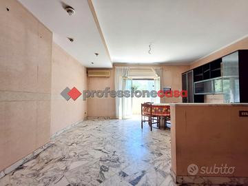 Professionecasa Paesi Etnei propone in vendita a Catania, a 5 minuti dall'Ospedale San Marco e a soli 7 km dal Centro Sicilia e dallo svincolo della tangenziale, in residence ben curato sito in Stradale San Giorgio, luminoso appartamento di quattro vani con cucina abitabile, posto al secondo ed ultimo piano, con garage incluso. L'appartamento si estende per una metratura di circa 100 mq ed è così composto: ingresso su salone doppio, cucina abitabile, due camere da letto, camerino finestrato, ripostiglio e bagno. Il quadrilocale gode di tripla esposizione e due graziosi balconi. L'immobile, che si presenta da ristrutturare, è dotato di predisposizione per l'installazione di climatizzatori. Completa la vendita un comodo garage di 20 mq.