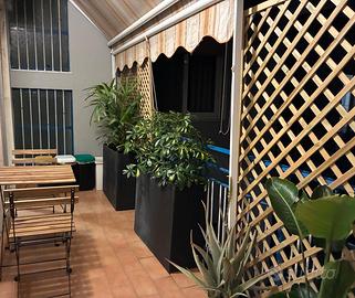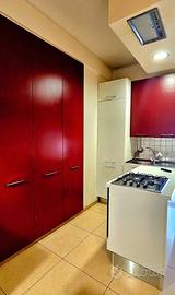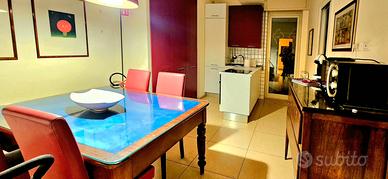 Locasi, con contratto transitorio, ricercato appartamento con 3 ambienti, posto ultimo piano in ascensorato, signorile e silenzioso complesso con giardino e custode. Possibilita di posto auto all' interno. Nelle immediate vicinanze supermercato aperto h/24, noto bar, farmacia, locali ristoro, fermata bus. Composto da ingresso-soggiorno, ampio tinello-cucina, camera da letto, bagno, piccola lavanderia, balcone terrazzato, porta blindata, wi-fi. Arredato con mobili d'epoca e moderni e completamente corredato con stoviglie, frigo, forno, microonde, piano induzione, macchina caffe, tv, wi-fi (da volturare), clima, ampio armadio, dispensa, asse e ferro da stiro etc. Possibilita (suppl. ? 65) di posto auto all' interno del condominio. Pigione ? 700, non trattabili. Non accettati animali