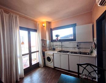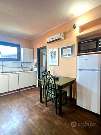 Sala con angolo cottura, camera da letto matrimoniale, bagno finestrato con doccia e terrazzo abitabile. Riscaldamento autonomo tramite pompe di calore caldo/freddo.