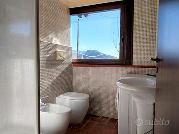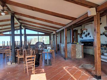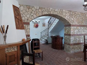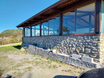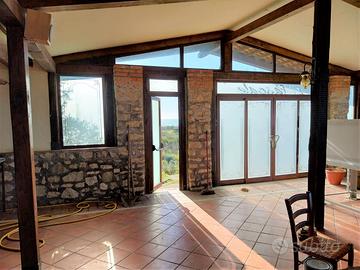 al piano terra troviamo ampio salone, cucina abitabile, bagno, spaziosa sala hobby di 130 mq dove trova posto un comodo forno a legna e dalla quale, tramite la vetrata, si gode di una suggestiva vista sul paese e sul mare;