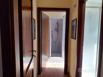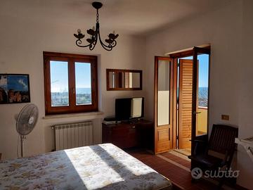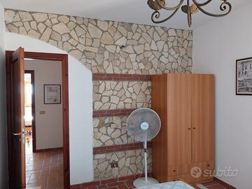 al primo piano troviamo tre camere, con annessi terrazzini di circa 8 mq totali (la cui vista va da Capo Palinuro a sud), doppi servizi.