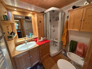 L'immobile si trova al piano alto all'interno di un contesto curato e riservato. Composto da ingresso, ampio soggiorno in stile tirolese completamente rivestito in legno, angolo relax, cucina abitabile, 2 camere da letto, bagno con doccia idromassaggio, balcone e spazi accessori, l'appartamento colpisce per il calore degli ambienti, la qualità dei materiali e il panorama naturale circostante.