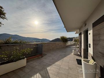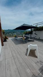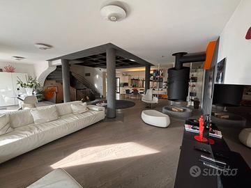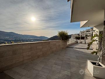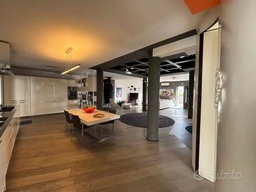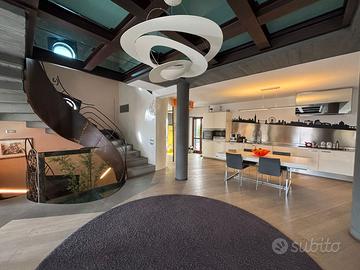 Ampio e luminoso salone con cucina a vista e camino, bagno ospiti e spettacolare terrazzo a livello di circa 200 mq, esclusivo e soleggiato, con piscina privata.