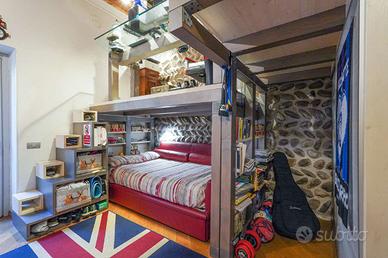 La zona notte comprende una camera padronale con un letto a baldacchino, la seconda camera e un bagno di servizio con box doccia in vetro.