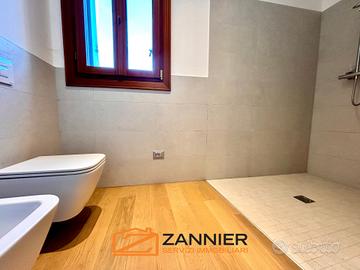 Un comodo doppio ingresso accompagna verso la zona notte, dove si trovano camere di grandi dimensioni, ciascuna con i propri servizi e spazi accessori, garantendo comfort e privacy a tutti i membri della famiglia.