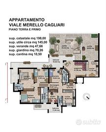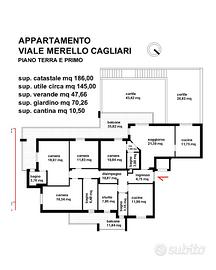Rif.32601010-314 VL In una delle zone più ricercate di Cagliari, nel rinomato Viale Merello, proponiamo in vendita un prestigioso immobile attualmente suddiviso in due appartamenti distinti, ideale sia come investimento a reddito sia come abitazione principale con unità indipendente per ospiti o locazione. Gli appartamenti sono in buono stato di manutenzione, ma potrebbe risultare opportuno fare degli interventi di ristrutturazione. Appartamento bivano: caratterizzato da ampie verande coperte e affacci sul verde dei cortili interni, composto da soggiorno, cucina abitabile, disimpegno, bagno con ventilazione forzata e doccia, camera matrimoniale. Caldaia a gas di città per l'acqua calda e pompe di calore caldo/freddo. Il cortile esterno di pertinenza è collegato con scala esterna, al piazzale dei parcheggi condominiali. Appartamento quadrivano: attualmente locato con contratto transitorio a studentesse fino al 30 settembre 2026, composto da: cucina abitabile, bagno di servizio, camera con veranda, ideale come zona lavanderia o area di servizio), tre ampie camere da letto, di cui una con bagno personale, bagno principale di circa 7 mq. Pompe di calore e scaldabagni elettrici. Spese condominiali: circa 125 euro mensili. Il riscaldamento condominiale è stato dismesso da tempo, consentendo una gestione autonoma dei consumi. È previsto un intervento di ristrutturazione di rifacimento della facciata esterna, già deliberato e saldato, con inizio dei lavori previsto subito dopo Pasqua. Al piano seminterrato una cantina di circa 10 mq e due posti auto. APE classe F SU QUESTO IMMOBILE E' PRESENTE IL VIRTUAL TOUR N.B. Alcune immagini sono state sostituite con immagini elaborate con AI al fine di rendere l'immagine più chiara e ordinata, ma senza alterare lo stato dei luoghi o apportare migliorie. Per info Valentina Losito Remax Mistral - Cell: Email: vlosito@remax.it REA 355142